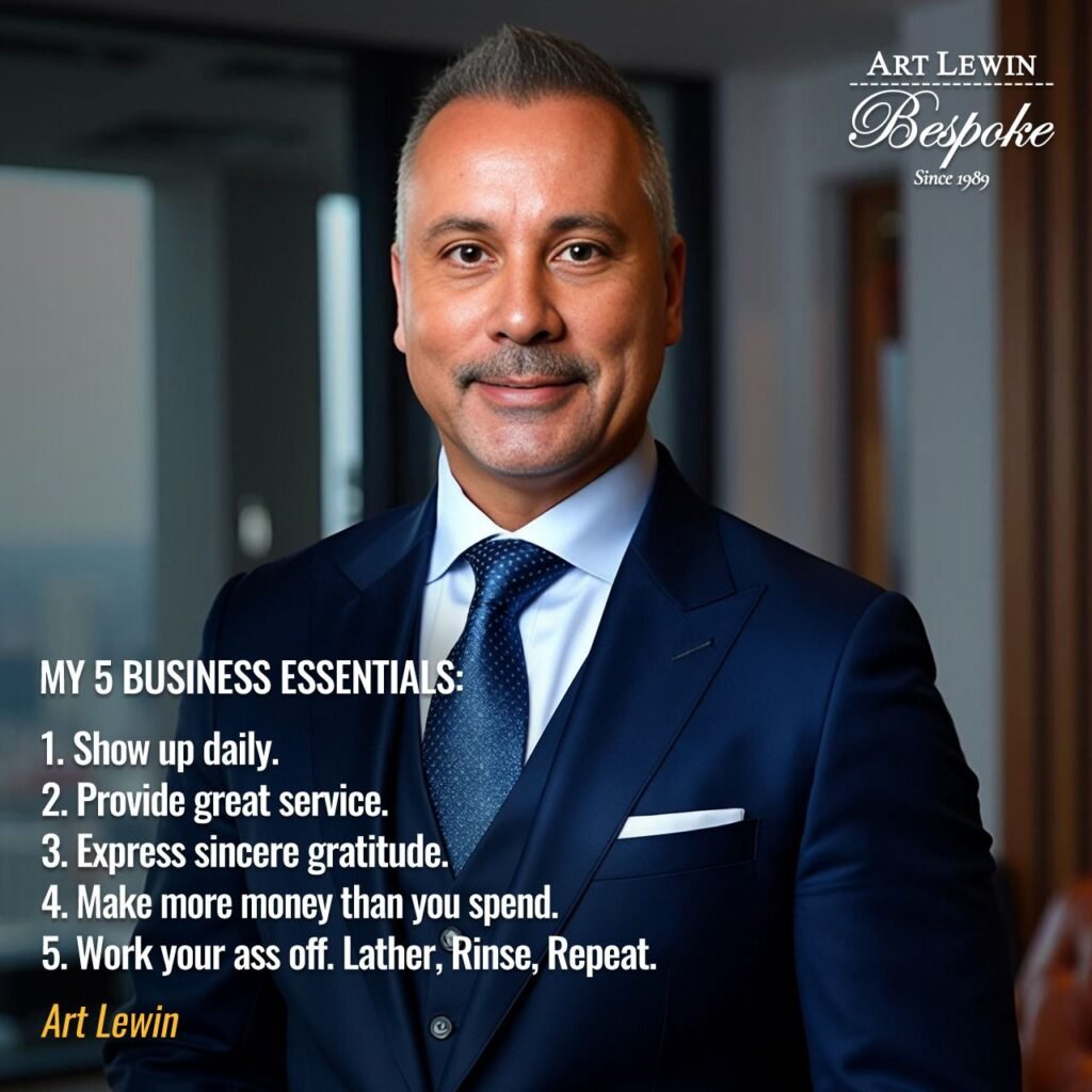 Lessons learned from very powerful and successful entrepreneurs. Art Lewin is a son, a father, a husband, and a loyal friend. He is also an entrepreneur a real estate investor, as well as the owner and creative director of Executive Clothiers, one of the world’s premier bespoke clothing companies and the leading custom clothier to California’s corporate stars as well as some of Hollywood’s movie stars