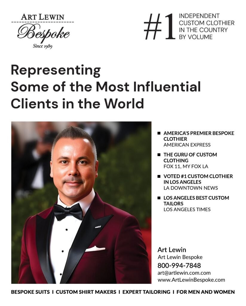 “This has been an amazing journey for me.” Art’s creative vision and eye for detail revolutionized the way the world looks and feels about men & women in power. Through his designs he instills confidence, creates success and inspires greatness. This is due, in part, to the extreme detail that allows Art’s design to fit perfectly. If you want a one-of-a-kind, measured-to-fit look, you have to come to me.” Art has been called “The country’s premier bespoke custom tailor” by American Express, “The Guru of Bespoke Suits” by MyFoxLA. Over 30 years of experience, Art Lewin continues to refine his classics and elegant look. “Clark Gable was one of my big inspirations. His look was youthful, cutting edge, elegant and sophisticated.